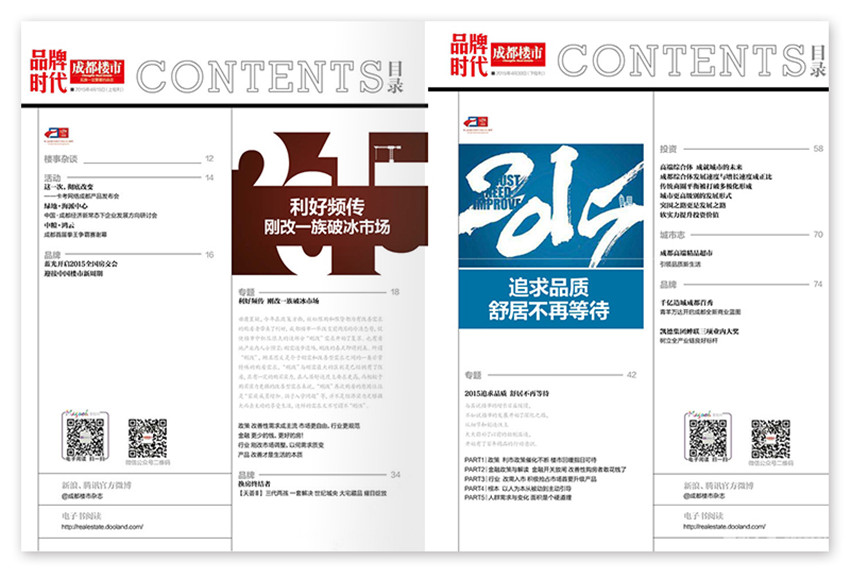 《成都樓市》雜志秉承客觀、公正、專業(yè)的服務(wù)原則,結(jié)合成都市房地產(chǎn)交易中心交易數(shù)據(jù)分析,為購(gòu)房者提供近期的樓市行情報(bào)道。并以多方位的樓盤(pán)檢索、全景式購(gòu)房地圖、客觀專業(yè)的樓盤(pán)點(diǎn)評(píng)和超大篇幅的樓盤(pán)個(gè)案信息幫助購(gòu)房者輕松完成購(gòu)房初選。