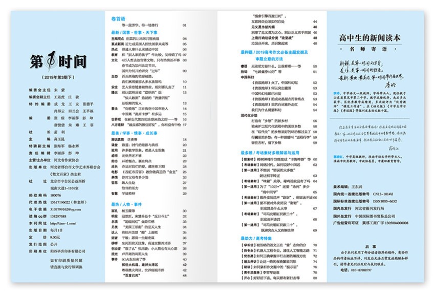 按照實用、新穎、個性、快速的宗旨,向高中學(xué)生傳遞新的作文素材信息,為廣大高中學(xué)生豐富知識,拓展視野搭建平臺。《及時時間》專為高中生量身打造的新聞類讀本!及時時間?天下事·萬象記:天下萬象在此一覽無余;情事·同學(xué):你的心事于此可得釋放;及時時間?成長事?致青春:微青春的那一抹青澀點(diǎn)贊,幫助高中生開闊視野,從中學(xué)會觀照自我,得到教益,并且能夠錘煉恰當(dāng)?shù)奶幨缿B(tài)度,打造應(yīng)有的宏觀格局。