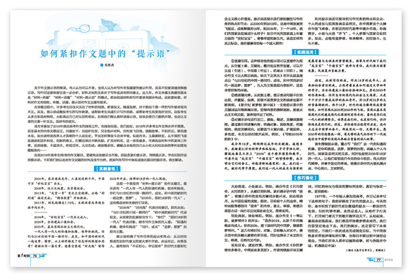 由延邊教育出版社出版,是我國高中生里面影響力的讀物之一,的內(nèi)容風(fēng)格現(xiàn)實犀利,通常用一些具有理性思辨的時事文章為中學(xué)生提供了解社會的窗口,將語文學(xué)習(xí)向社會延伸,培養(yǎng)綜合語言能力,陶冶美感情操。在價值觀宣傳上,《及時時間》強(qiáng)調(diào)傳播社會文化規(guī)范和價值體系,塑造青少年正確人生觀,是我國一本高中生的新聞讀本。