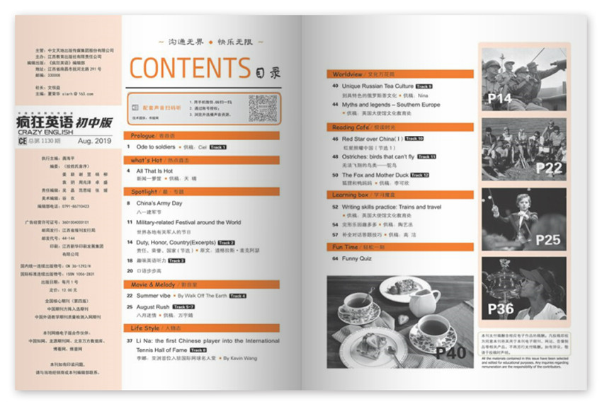《瘋狂英語(yǔ)》(月刊)創(chuàng)刊于1980年,多年來(lái)雜志內(nèi)容及形式方面與時(shí)俱進(jìn),并以其形式和內(nèi)容的豐富性及多樣性,贏得了不同階層讀者的喜愛(ài)與擁護(hù)。
