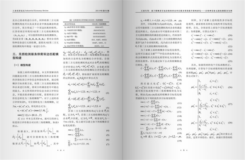 為實現(xiàn)服務(wù)績效的提升,通過研究企業(yè)和第三方無損檢測機構(gòu)之間特種設(shè)備無損檢測服務(wù)的供需匹配問題,提出了一種模糊多目標(biāo)決策方法:首先,構(gòu)建企業(yè)與第三方無損服務(wù)機構(gòu)的評價指標(biāo);其次,對無損檢測服務(wù)供需問題進行描述;后,根據(jù)模糊多目標(biāo)決策方法進行求解,將語言評價信息轉(zhuǎn)化為三角模糊數(shù),終計算得到匹配結(jié)果。