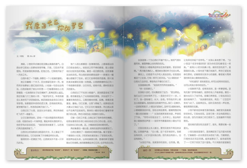 《童話世界·故事》主要欄目:柒染童話、冰夫老師作文課堂、金牌小作家、水晶翅膀、時(shí)光列車、鬼才畫秀、草莓莊園、老乖的后花園等。