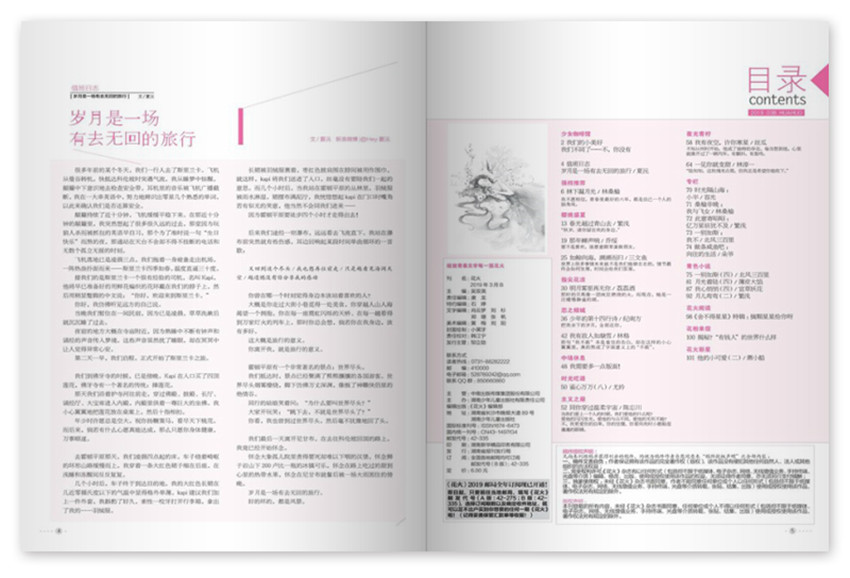 《花火》(月刊)創(chuàng)刊于2005年,多年來雜志內(nèi)容及形式方面與時俱進(jìn),并以其形式和內(nèi)容的豐富性及多樣性,贏得了不同階層讀者的喜愛與擁護(hù)。年少的愛情是信仰或者是沿途的風(fēng)光,都不再重要,重要的,時光已經(jīng)泛黃,過不去的都過去了,是誰說的,有些愛終是散落在人海,像離開一個再也回不去的城市,像傳聞里所有陳詞濫調(diào)的故事,你不見了,我才這樣想念你。