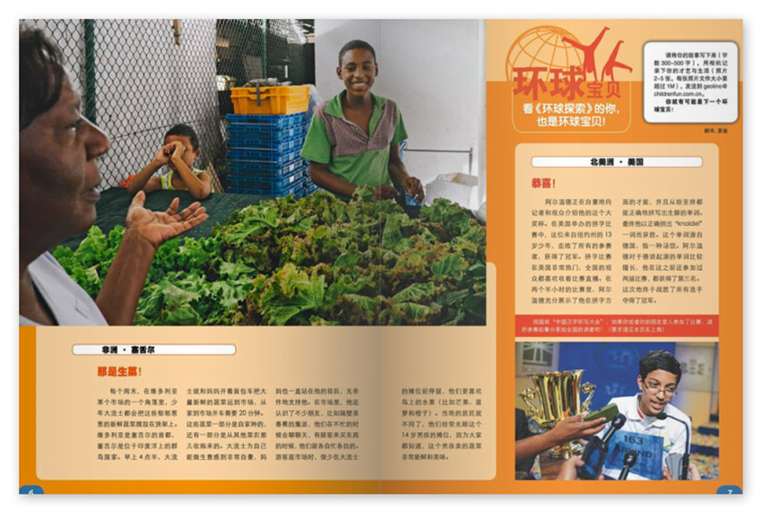 《環(huán)球探索》少年版主要欄目:科學夢想、世界人文、自然探秘、趣樂游戲等。