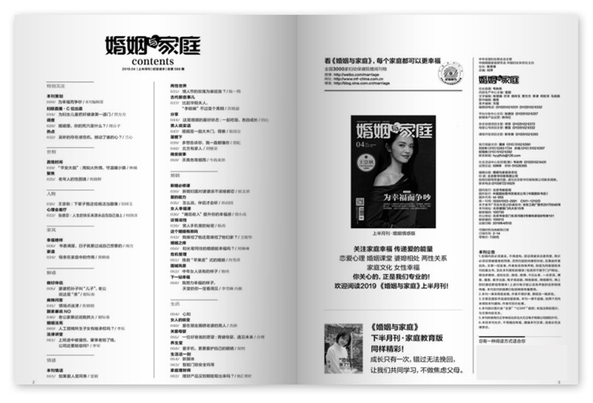 一本很好的(類別)雜志,幫讀者構(gòu)建完整的知識(shí)體系、思維模式和寬闊的格局,不管是雜志中的配圖,還是文字,都深深吸引著讀者的目光,對(duì)文學(xué)文摘產(chǎn)生了濃厚興趣。《婚姻與家庭》雜志緊緊把握時(shí)代脈搏,所選取知識(shí)都是與生活息息相關(guān),很有時(shí)代感的知識(shí),講解非常詳細(xì),可讀性強(qiáng),深入淺出,是一本開(kāi)闊視野、開(kāi)拓思維的雜志。
