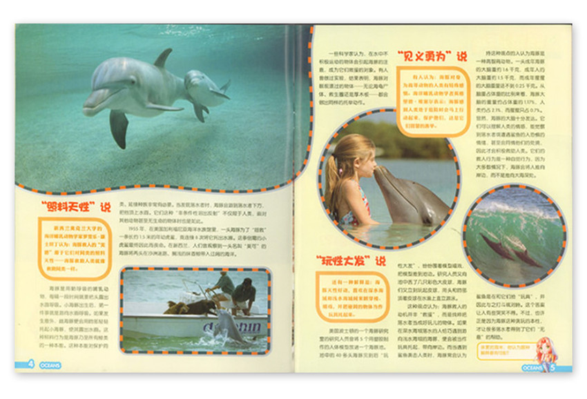 海豚見義勇為、照料天性、玩性大發(fā)。就在這時(shí),又有兩只大海豚趕來,它們迅速地把受傷的幼豚托出水面,替換原來那兩只大海豚的工作。過了一會(huì)兒,又來了許多同伴,它們爭先恐后,輪流救助小海豚,使受傷的小家伙很快蘇醒過來,能夠自己呼吸。