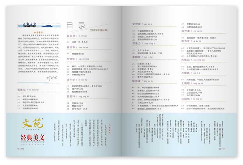《文苑·經(jīng)典美文》主要欄目:真、趣、人、美、風雅頌、詩禮樂、智、經(jīng)典主題、閱讀留言。