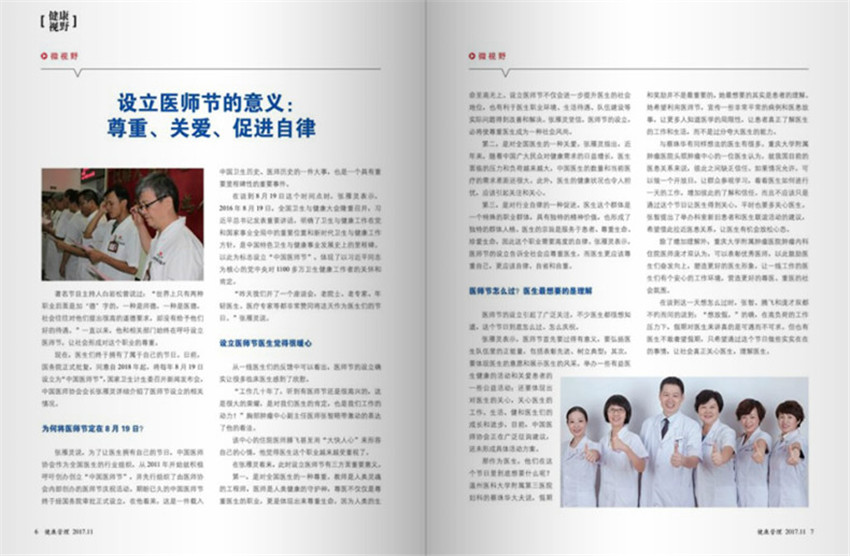 設(shè)立醫(yī)師節(jié)的意義:尊重、關(guān)愛(ài)、促進(jìn)自律。著名節(jié)目主持人白巖松曾說(shuō)過(guò):“世界上只有兩種職業(yè)后面是加‘德’字的,一種是師德,一種是醫(yī)德,社會(huì)往往對(duì)他們提出很高的道德要求,卻沒(méi)有給予他們好的待遇?!币恢币詠?lái),他和相關(guān)部門(mén)始終在呼吁設(shè)立醫(yī)師節(jié),讓社會(huì)形成對(duì)這個(gè)職業(yè)的尊重?,F(xiàn)在,醫(yī)生們終于擁有了屬于自己的節(jié)日。日前,國(guó)務(wù)院正式批復(fù),同意自2018年起,將每年8月19日設(shè)立為“中國(guó)醫(yī)師節(jié)”,國(guó)家衛(wèi)生計(jì)生委召開(kāi)新聞會(huì),中國(guó)醫(yī)師協(xié)會(huì)會(huì)長(zhǎng)張雁靈詳細(xì)介紹了醫(yī)師節(jié)設(shè)立的相關(guān)情況。