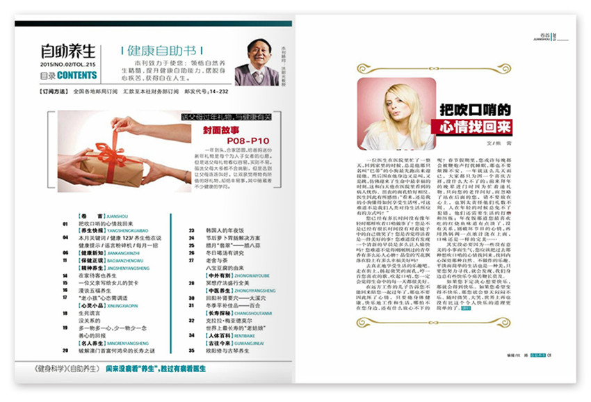 《健身科學(xué)》主要欄目:卷首、養(yǎng)生快報、重點關(guān)注、健康正誤、專題制造、精神養(yǎng)生、心靈小品,等。