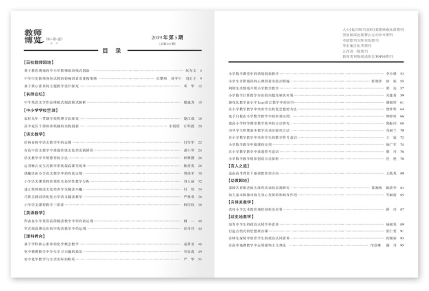 《教師博覽》主要欄目:情思、視野、瞭望、專稿、征文、信息、教育人物、人生、文學、社會、教苑、耕耘、生活、編讀等。