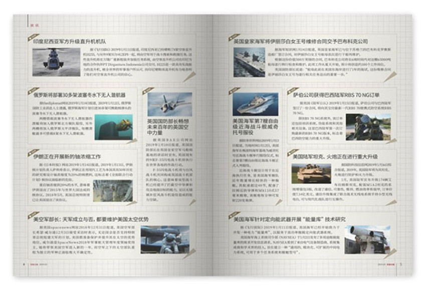 很權(quán)威,很全面,外觀大氣,印刷良好,內(nèi)容參數(shù)詳細(xì),如果有更深層的剖析將會無與倫比。圖文并茂非常適合軍事愛好者購買的雜志。