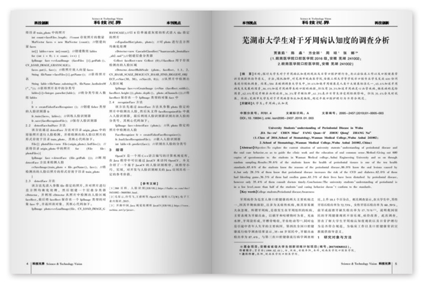 蕪湖市大學(xué)生對于牙周病認(rèn)知度的調(diào)查分析,目的:探討大學(xué)生對于牙周病認(rèn)知度的現(xiàn)狀及日??谇蛔o(hù)理行為,為以后臨床工作以及口腔健康常識宣教提供指導(dǎo)意義。方法:隨機(jī)抽樣,對蕪湖市皖南醫(yī)學(xué)院,安徽工程大學(xué)等學(xué)校非口腔專業(yè)學(xué)生發(fā)放600份問卷進(jìn)行隨機(jī)調(diào)查。
