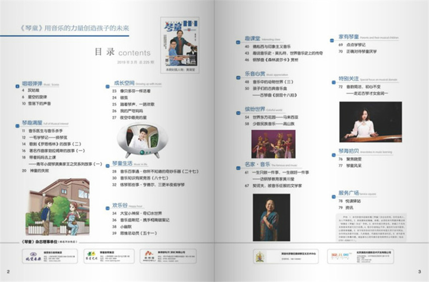 《琴童》主要欄目:卷首語、成長空間、琴童生活、彈彈唱唱、琴趣滿屋、名家.音樂、家有琴童、特別關(guān)注、琴海拾貝、服務(wù)廣場等。