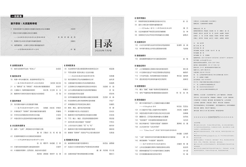 《全媒體探索》(月刊)創(chuàng)刊于2021年,多年來雜志內(nèi)容及形式方面與時(shí)俱進(jìn),并以其形式和內(nèi)容的豐富性及多樣性,贏得了不同階層讀者的喜愛與擁護(hù)。致力于成為全媒體從業(yè)者的知識庫和思想庫。在媒體深度融合的時(shí)代背景下,雜志以服務(wù)行業(yè)發(fā)展為己任,聚焦全媒體領(lǐng)域的政策趨勢、技術(shù)創(chuàng)新、業(yè)態(tài)變革和人才培養(yǎng),為讀者提供權(quán)威、專業(yè)、實(shí)用的內(nèi)容支持。