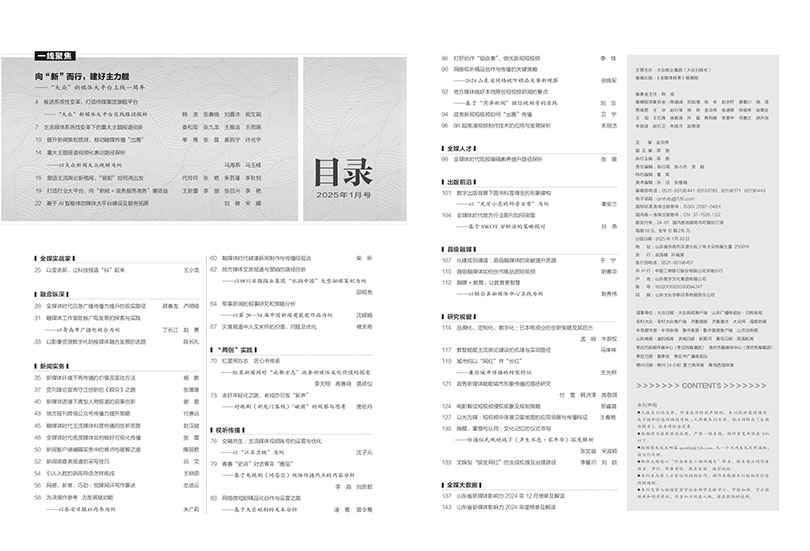 雜志注重內(nèi)容的實(shí)用性,在“新聞實(shí)務(wù)”“經(jīng)營管理”等欄目中,提供具體的操作指南、案例分析和管理策略,如如何打造爆款短視頻、如何優(yōu)化融媒體矩陣運(yùn)營、如何提升用戶粘性等,助力從業(yè)者提升業(yè)務(wù)能力。通過“智能應(yīng)用”“融合轉(zhuǎn)型”等欄目,及時(shí)報(bào)道國內(nèi)外最新的技術(shù)應(yīng)用和行業(yè)動(dòng)態(tài)。