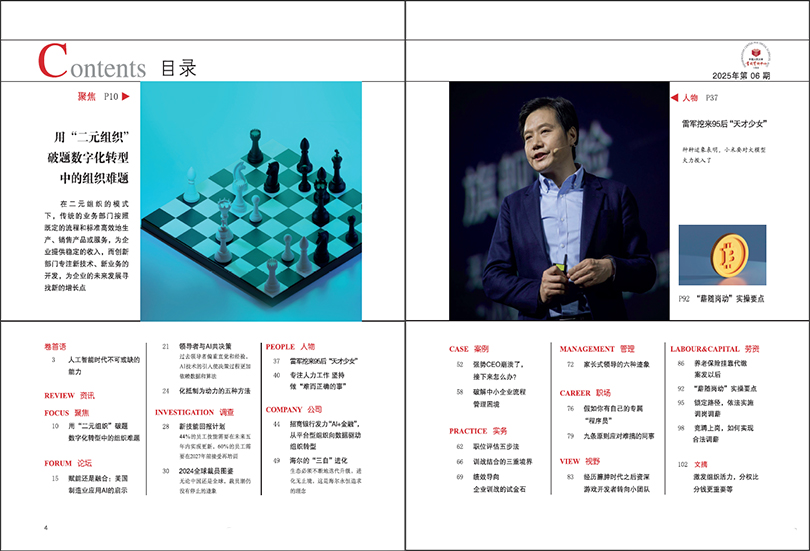 雜志的內(nèi)容體系注重從宏觀趨勢到微觀操作的全面覆蓋。在宏觀層面,持續(xù)解讀國家人力資源政策法規(guī)、經(jīng)濟轉(zhuǎn)型對人才戰(zhàn)略的影響;在微觀層面,深入剖析企業(yè)招聘、培訓、績效、薪酬等模塊的創(chuàng)新案例。這種“頂天立地”的內(nèi)容設計,使其既能為企業(yè)高管提供戰(zhàn)略參考,又能為一線HR從業(yè)者提供實操工具,成為人力資源領域不可多得的“百科全書式”刊物。