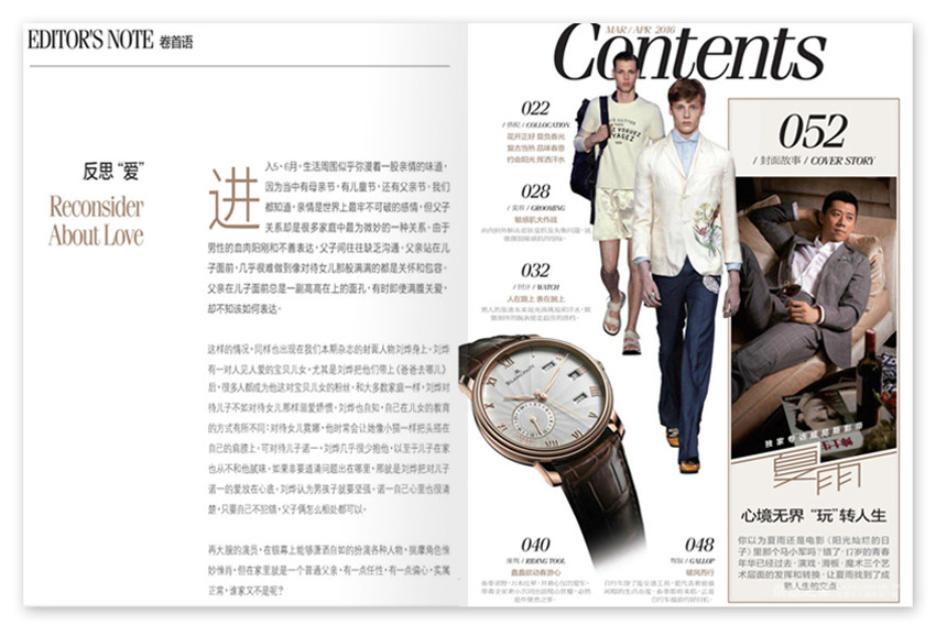 《椰城·紳士生活》主要欄目:COLLOCATION搭配、ACCESSORIES配飾、GROOMING美容、WATCH時計、DIGITAL數(shù)碼、PROPERTY樓盤等。