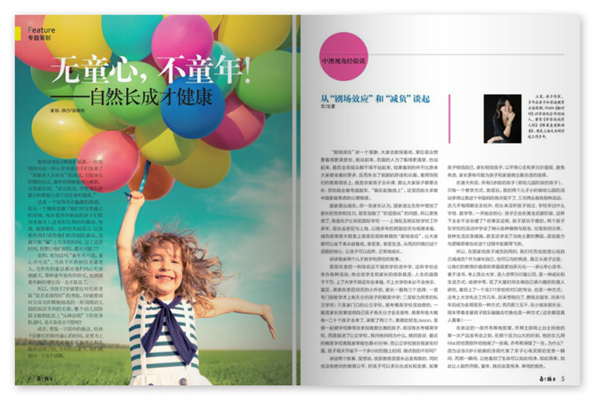 《為了孩子》關(guān)注年輕媽媽的生活狀態(tài),更多融入了兒童時(shí)尚類的流行因素,涉及兒童時(shí)尚,現(xiàn)代兒童身心健康、新兒童用品信息,兒童網(wǎng)絡(luò)動(dòng)態(tài)等多方面的內(nèi)容。力求滿足幼兒及其家長的現(xiàn)實(shí)需求。