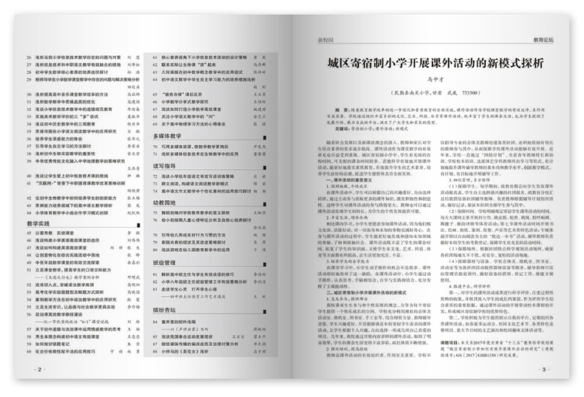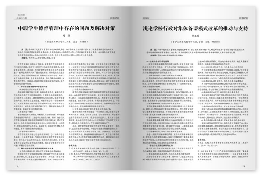 《新校園》雜志是面向全國公開發(fā)行的教育教學(xué)類綜合性刊物,為山東省優(yōu)秀期刊。雜志搭建起全國教育工作者之間學(xué)術(shù)交流、理論探討、經(jīng)驗(yàn)傳播、成就展示的教育類期刊平臺。