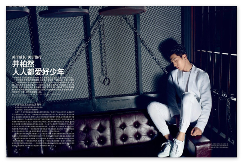 井柏然人人都愛好少年,一個喜歡吃小雞燉蘑菇的東北萌,其實更喜歡宅在家里發(fā)呆、放空、打電動;一個時尚圈頻頻亮相的質(zhì)感偶像,也會畫風(fēng)突變做個鬼臉、編個小曲兒,笑倒眾人;《相愛穿梭千年》中溫潤如玉的公明、《失孤》中干凈俊朗的少年,參加真人秀又變身地主家的傻兒子,《捉妖記》里直接搞大肚子生起孩子。有人夸他低調(diào)、樂觀、性格好,有人愛他幽默、自然、有點(diǎn)萌,有人因他秀氣的字體被圈粉,有人單憑他高顏值好氣質(zhì)就為之傾倒,采訪時他貼心的全程手捧錄音筆,單憑這件“小事”或許你就能愛上他。