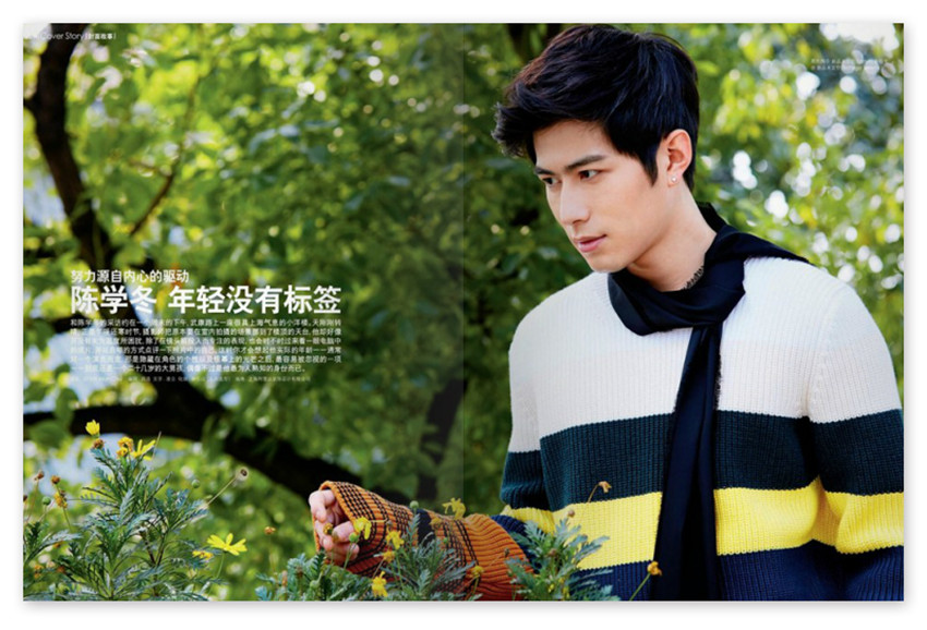 陳學(xué)冬,年輕沒有標(biāo)簽,和陳學(xué)冬的采訪約在一個周末的下午,武摩路上一座很具上海氣息的小洋樓。天剛剛轉(zhuǎn)晴,正是乍暖還寒時節(jié),攝影師把原本要在室內(nèi)拍攝的場景挪到了樓頂?shù)奶炫_,他卻好像并沒有太為溫度所困擾,除了在鏡頭前投入而專注的表現(xiàn),也會時不時過來看一眼電腦中的成片,并以自嘲的方式點(diǎn)評一下照片中的自己,這時你才會想起他實際的年齡——通常對一個演員而言,那是隱藏在角色的個性以及銀幕上的光芒之后,容易被忽視的一項——到底還是一個二十幾歲的大男孩,偶像不過是他為人熟知的身份而已。