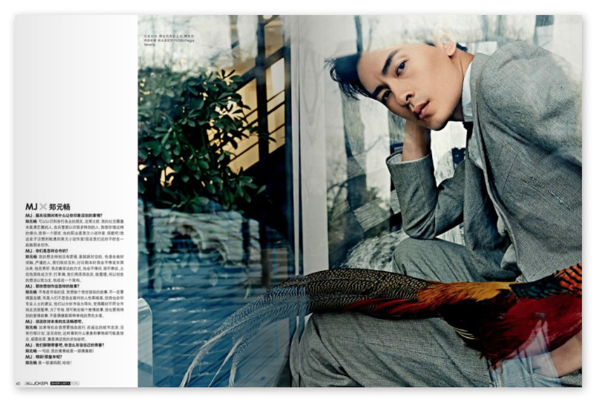 請叫我“鄭能量”鄭元暢拼在當(dāng)下,初見鄭元暢,感覺他有點(diǎn)“冷”,不是冷漠或冷酷,而是一種淡淡的疏離氣質(zhì);而落坐后,鄭元暢變“暖”了:隨和、健談、外放。曾經(jīng)的花美男“直樹君”如今已成長為睿智熟男,開著餐廳、運(yùn)營著自己的經(jīng)紀(jì)公司,實打?qū)嵆蔀閭髡f中的“霸道總裁”;新劇《只因單身在一起》大熱,拉著女主角微博曬鬼臉,硬生生成為“逗包夫婦”;還在創(chuàng)作劇本,想要寫出一個驚世駭俗的故事,期待做一個內(nèi)外兼修的“才子”。