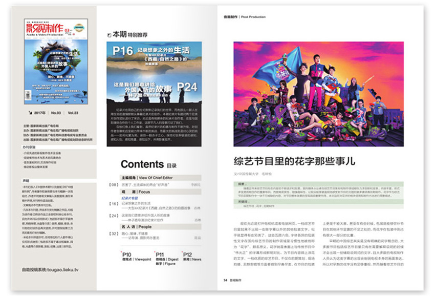 《影視制作》的主要欄目有:外刊速覽、微觀點、數(shù)字、新聞、觀潮、名人訪、專欄、攝錄地帶等。