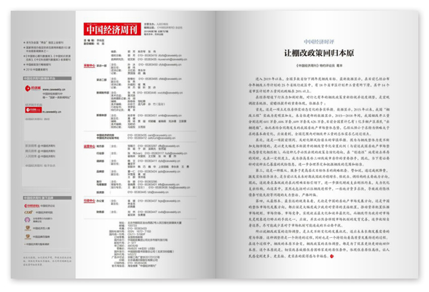 《中國(guó)經(jīng)濟(jì)周刊》雜志定位于“領(lǐng)導(dǎo)者決策的經(jīng)濟(jì)參考”,以政經(jīng)為主的綜合經(jīng)濟(jì)類期刊,為中央、地方及企業(yè)的領(lǐng)導(dǎo)層提供有決策借鑒價(jià)值的資訊,做中國(guó)經(jīng)濟(jì)轉(zhuǎn)型的真實(shí)記錄者,中國(guó)經(jīng)濟(jì)國(guó)際化的理性觀察者,中國(guó)經(jīng)濟(jì)復(fù)興的歷史見證者。