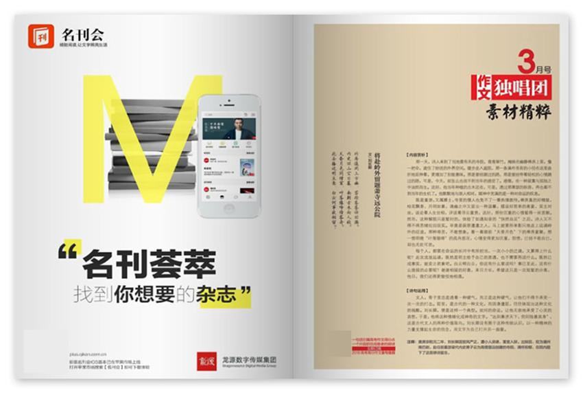 《課堂內(nèi)外·作文獨(dú)唱團(tuán)》(月刊)創(chuàng)刊于2010年,多年來(lái)雜志內(nèi)容及形式方面與時(shí)俱進(jìn),并以其形式和內(nèi)容的豐富性及多樣性,贏得了不同階層讀者的喜愛(ài)與擁護(hù)。大容量與新鮮的視角,暢游值得閱讀的空間,瀏覽當(dāng)月的透徹?zé)狳c(diǎn),直擊沖擊力的焦點(diǎn)話題;語(yǔ)文不僅僅局限于教科書(shū),語(yǔ)文是人生,是生活,更是社會(huì)。