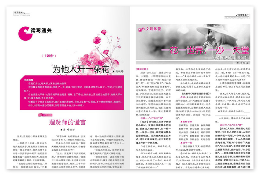 目標(biāo)明確,成為作文技法指導(dǎo)與素材供應(yīng)平臺,匯聚名師,依托全國作文名師考研中心,匯集名師,成就作文期刊;主要欄目:作家零距離、寫作夢工廠、佳作現(xiàn)場、讀寫通關(guān)、素材庫、好書新薦等。