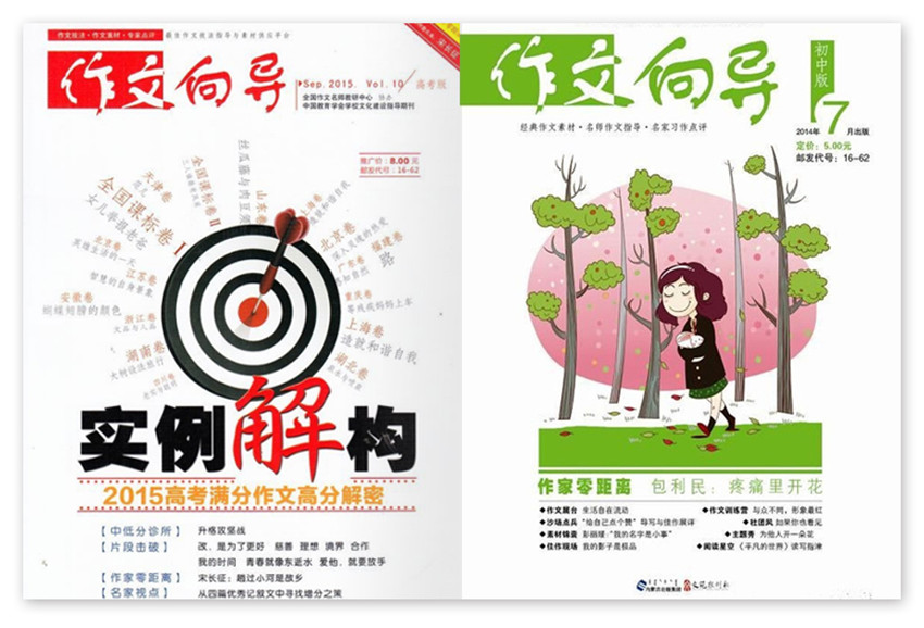 《作文向?qū)А冯s志出身名門,中國教育學(xué)會學(xué)校文化建設(shè)指導(dǎo)期刊,內(nèi)蒙古出版集團(tuán)文苑報(bào)刊社傾力打造,部級課題顧問牟懷松先生擔(dān)綱主編,有效武裝你的“素材庫”——素材實(shí)用、經(jīng)典、好看、新鮮,多元啟發(fā)激活思維,讓你激情迸射思維千樹。
